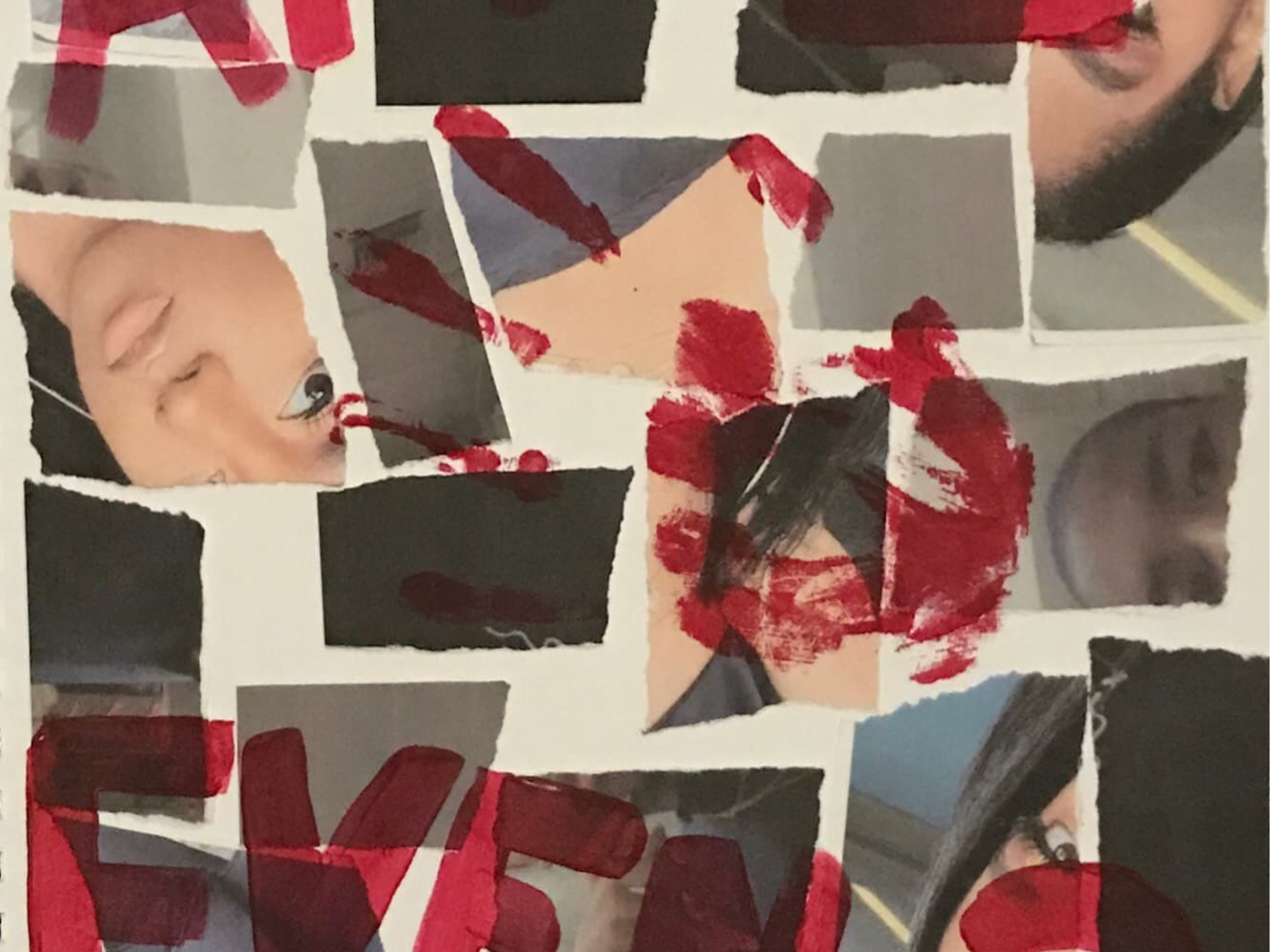 Medium: Mixed media Interactive Installation (India Ink, vintage paper, glass vase, red cream lipstick, glitter)